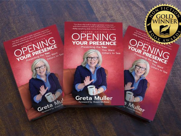 Her award winng second edition of Opening Your Presence expands Greta's exploration of developing one’s authentic expression in the current hybrid environment of virtual and live interactions. Her book has been translated, and published in Greek and Chinese. Greta has been interviewed in various magazine and podcasts. She writes articles, speaks, and conducts workshops, exploring the powers of bold authenticity and accountability.